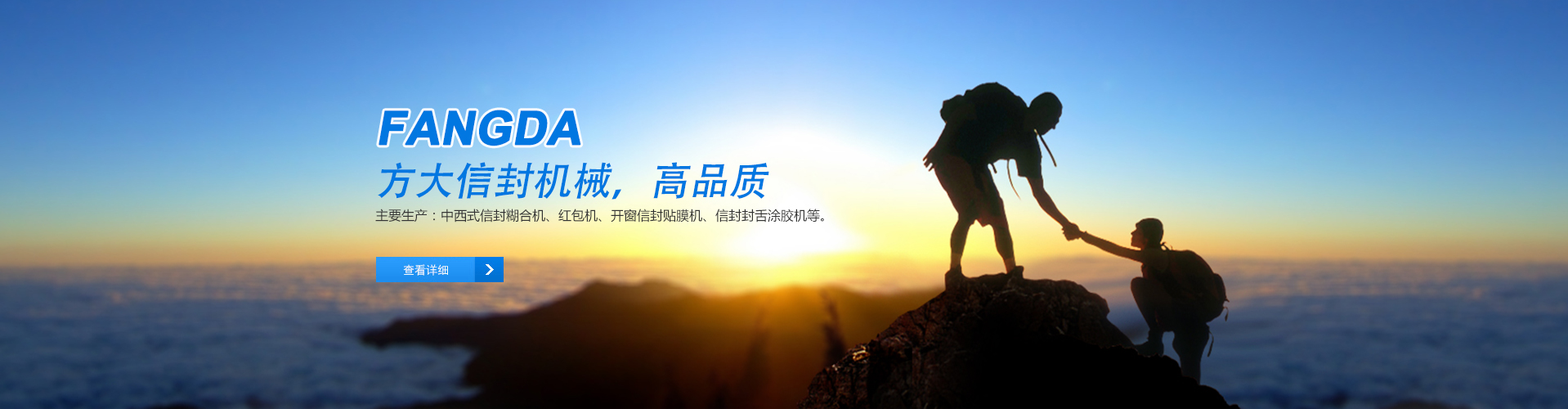 瑞安方大信封機械有限公司,是專業(yè)生產(chǎn)信封機糊合設備系列產(chǎn)品的企業(yè),主要產(chǎn)品有:中西式信封糊合機、紅包機、開窗信封貼膜機、信封封舌涂膠機等。實力來自規(guī)模,品質(zhì)源自專業(yè)。我廠擁有專業(yè)老練的工程設計人員,經(jīng)驗豐富的生產(chǎn)安裝人員,嚴謹認真的質(zhì)量檢驗人員,從而保證了所生產(chǎn)機械的優(yōu)良品質(zhì)。此外,我廠也將從技術(shù)上、性能上不斷改進提高,以更好的滿足客戶的需求。“客戶至上,服務為本”是我廠長期一貫的服務理念,從安裝、測試、保養(yǎng)、維修等售后服務,我們會給予客戶充足的信息資訊與技術(shù)支持,因此在業(yè)界獲得良好的口碑及信譽,您的滿意是我們的榮耀!歡迎您來電查詢、來人參觀,我們一定能給你滿意的答復!秉承“顧客至上,銳意進取”的經(jīng)營理念,堅持“客戶為先”的原則為廣大客戶提供溫馨的服務。歡迎惠顧!
